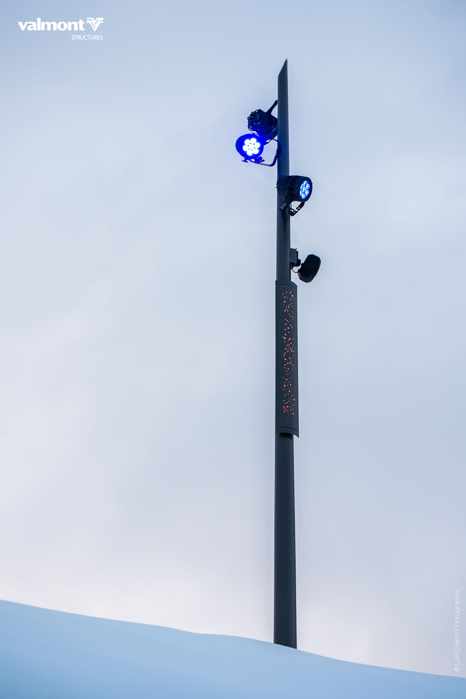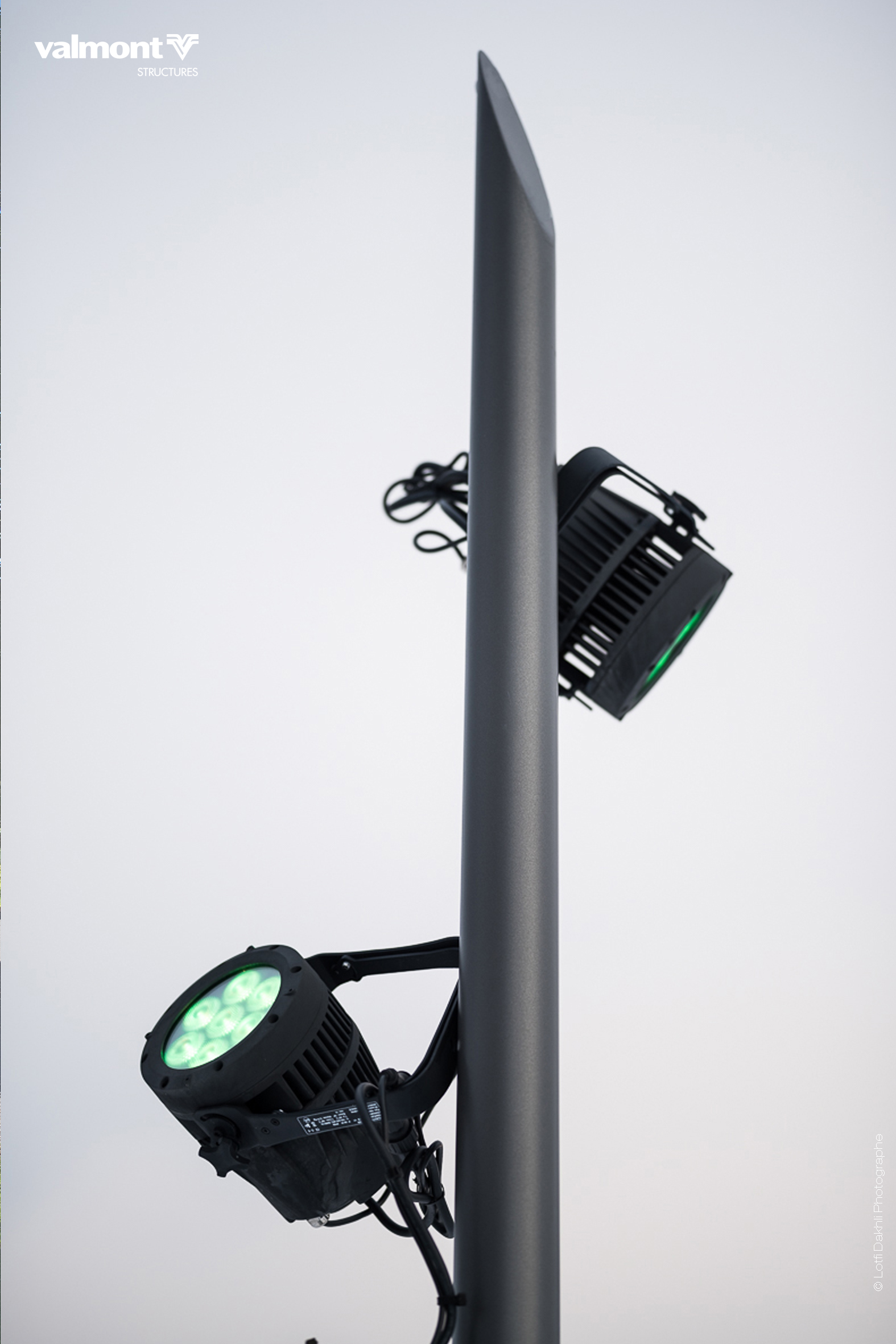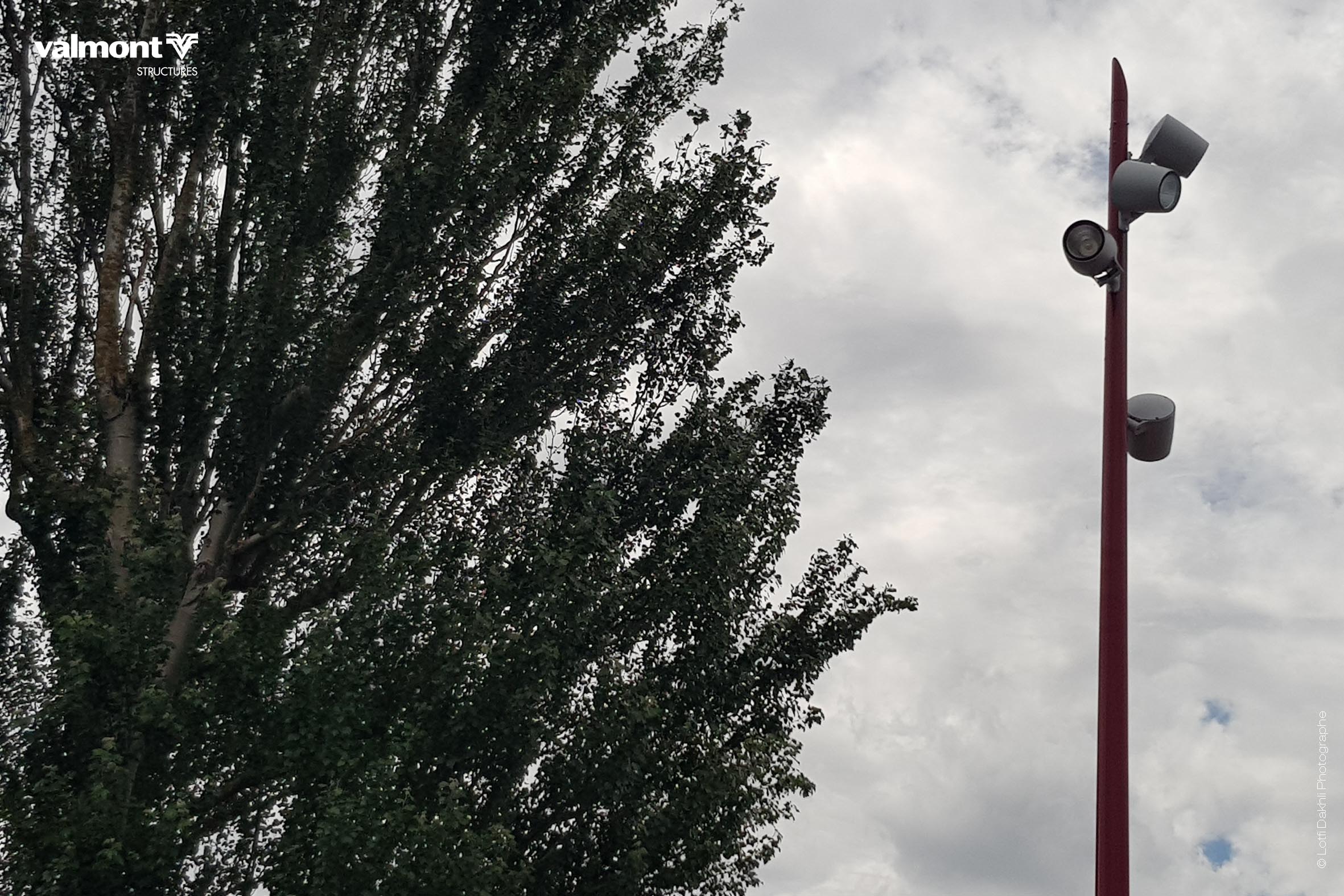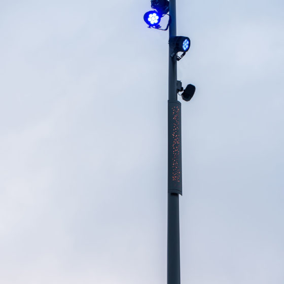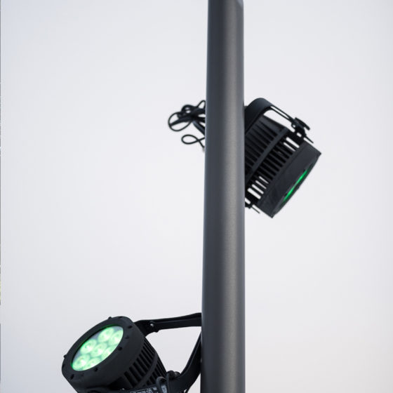 Oblik est un mât support projecteurs mixte offrant une alternative à la traditionnelle solution aiguille.