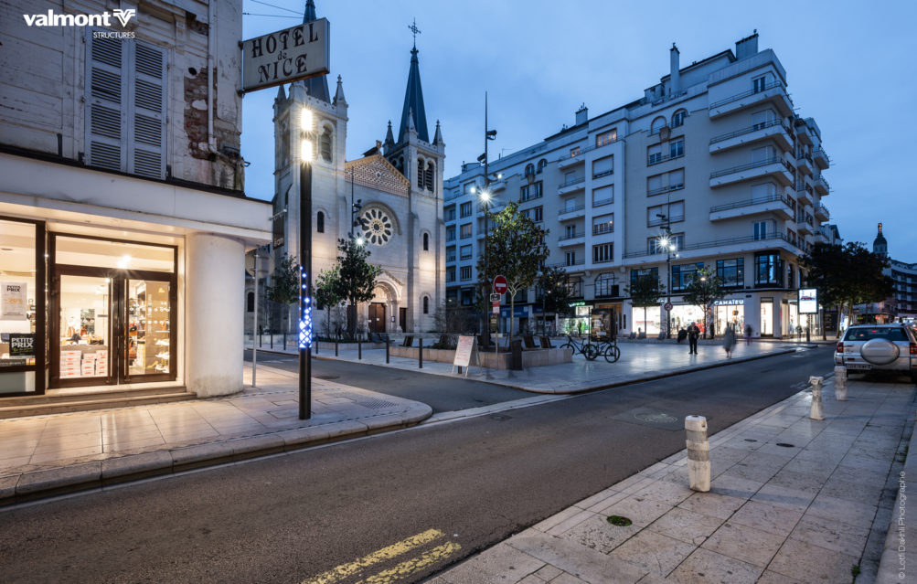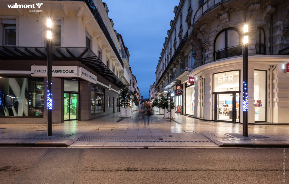 Que ce soit pour du shopping ou une balade en amoureux, la rue Clemenceau est un axe majeur au cœur de Vichy. Cette traversée est désormais jalonnée de Smart Jalousie qui, équipées d’une mise en lumière dynamique et de sonorisation, participent à l’animation du centre-ville lors d’événementiels.