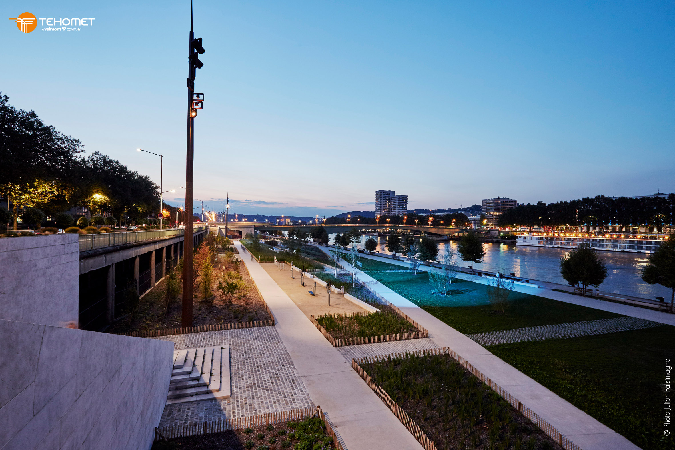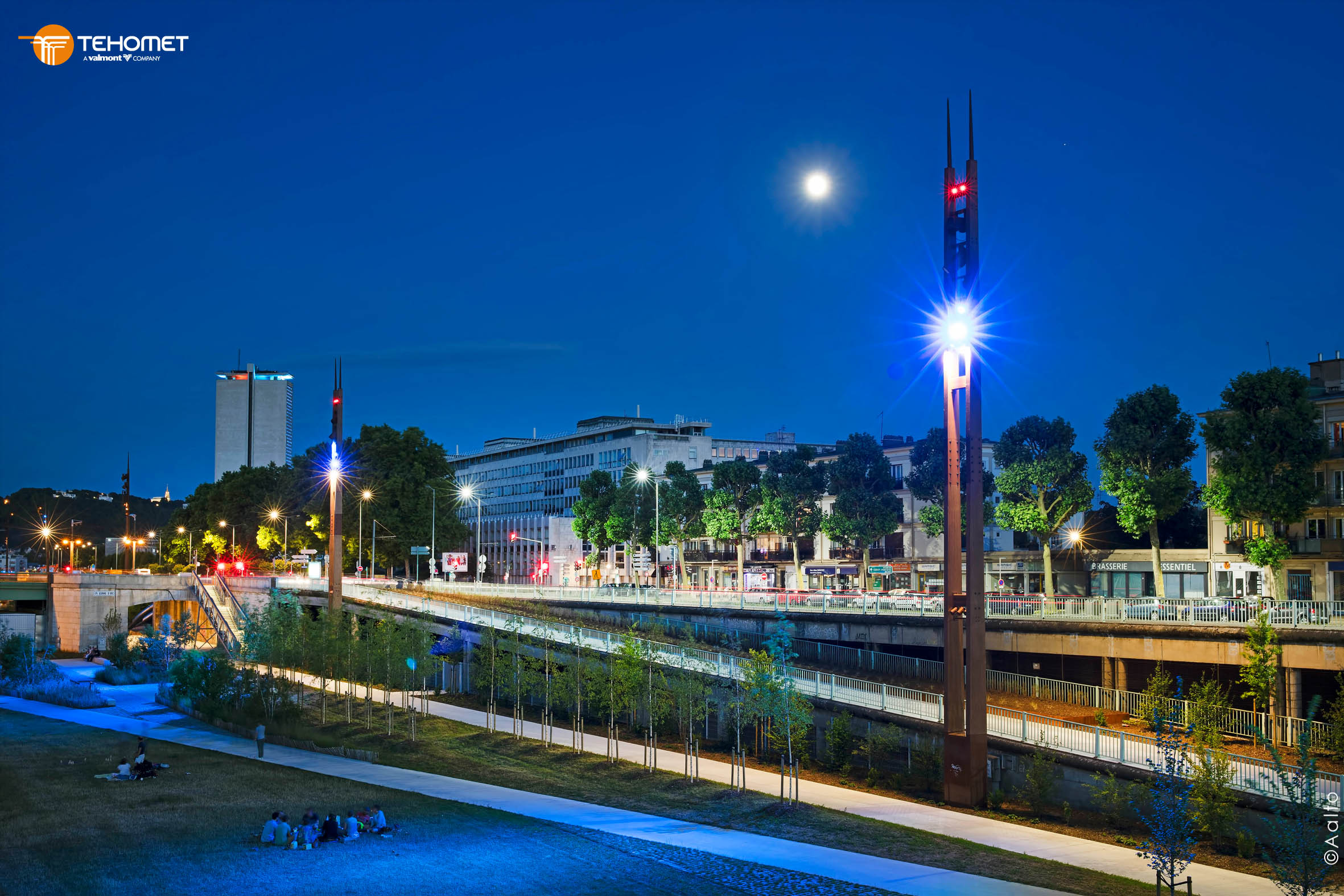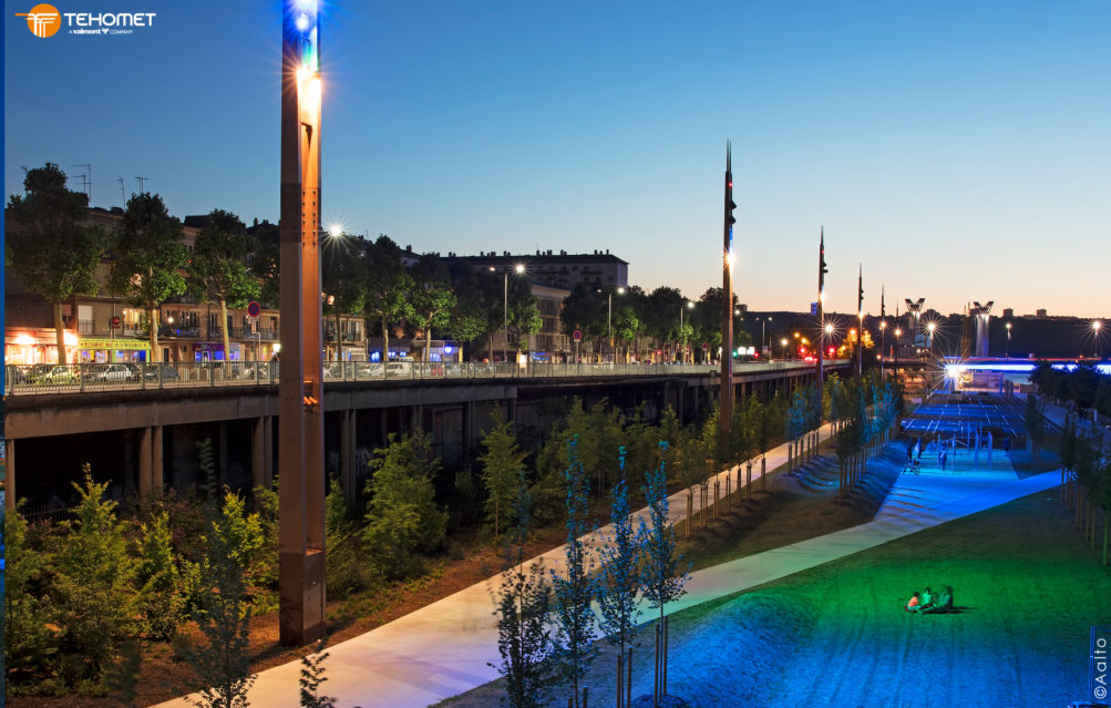 Le projet lumière déploie une promenade nocturne douce et colorée ainsi que des outils de mise en lumière modulable des sites.